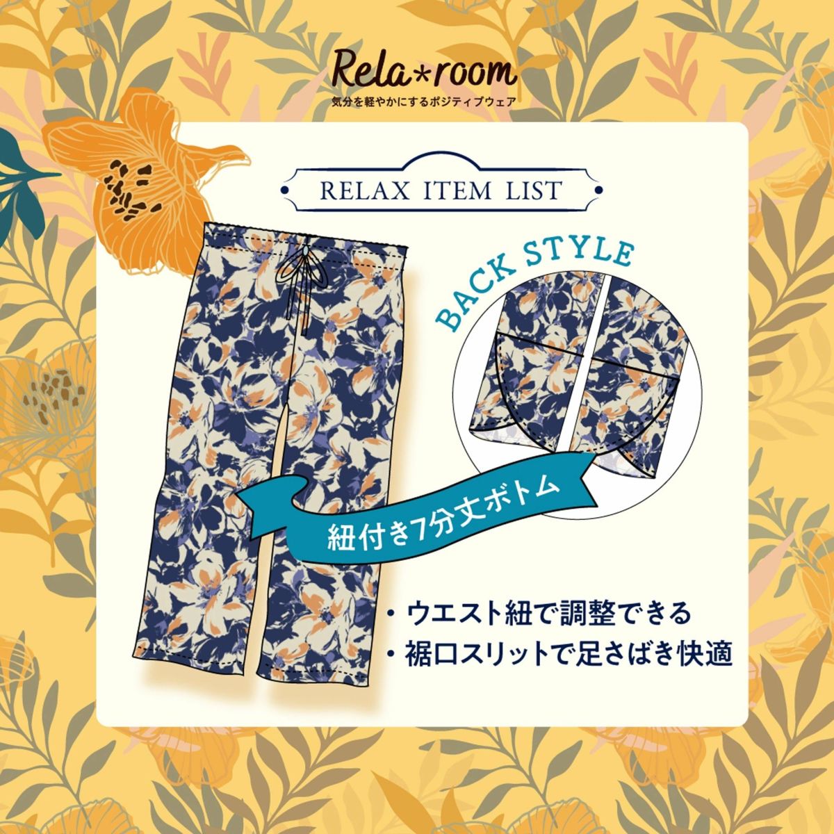 Rela*room 紐付き7分丈ワイドパンツ M・L